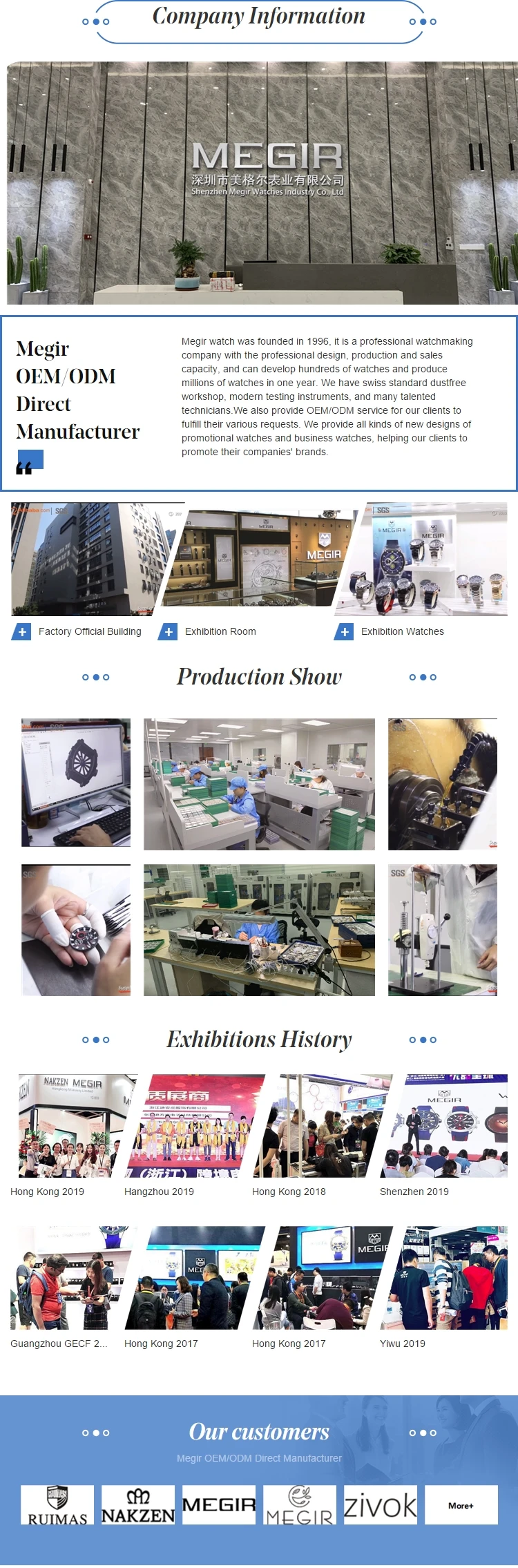 - For OEM or ODM watches, we will manufacture the products according to your requirements. It can comply with CE&RoHS, Nickle free, etc. You can arrange your QC team or hire the third party to test the watches before delivery.