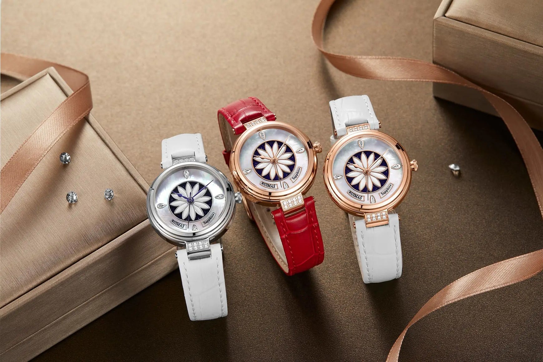 RUIMAS 6776 luxury Lady Automatic Mechanical Women Watch 5 ATM Leather Band Sapphire Flower Design Stainless Case Custom Clock