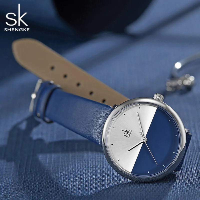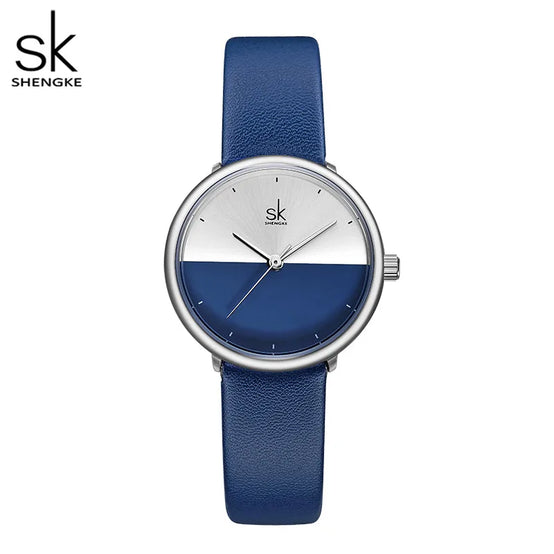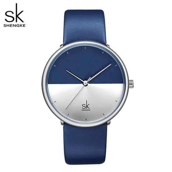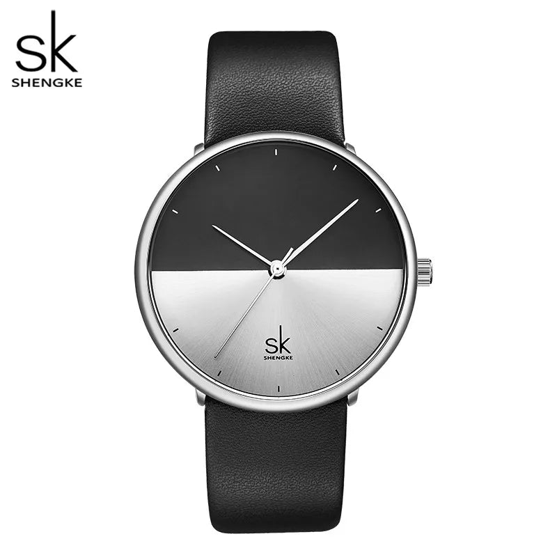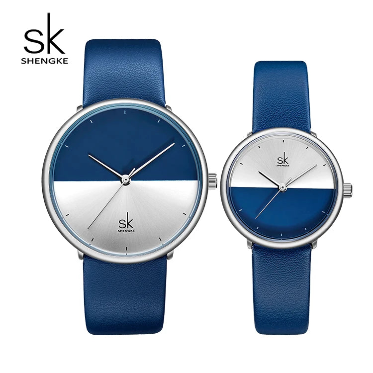 Shengke Women Dress Watch Luxury Lovers Couple Watches Men Creative Dial Women Leather Strap Quartz Wristwatch Montre Homme 9016
