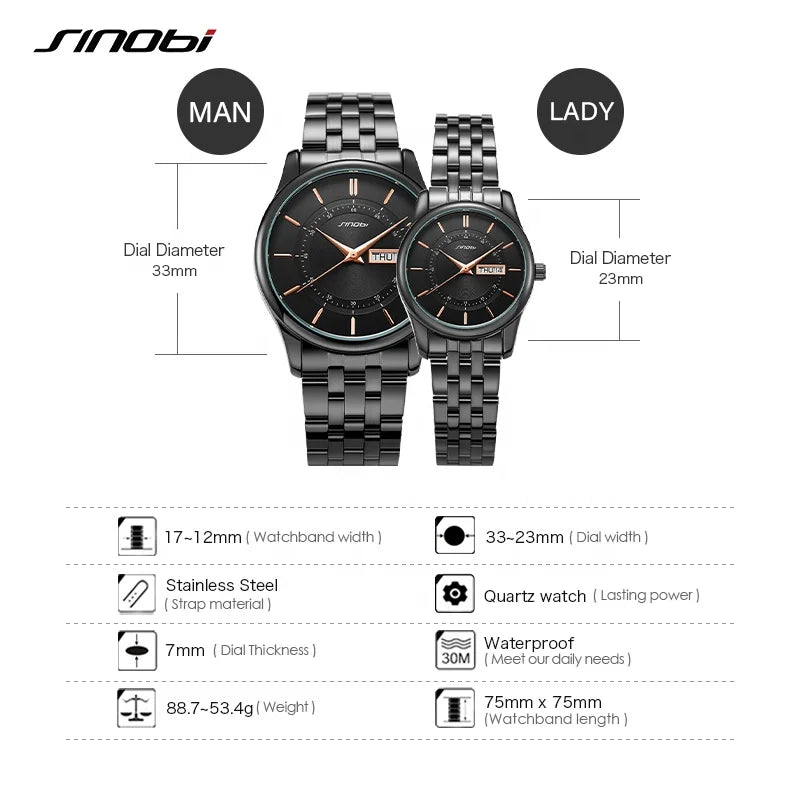 SINOBI Classic Business Style Couple Watch High-quality Quartz Man and Women Wrist Watch for Lovers Gifts Japanese Movement