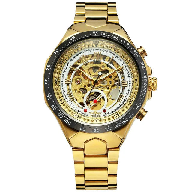 WINNER 432 Gold Clock Wrist Watches Skeleton Display Mechanical Automatic Black Retro Fashion Mens Watches