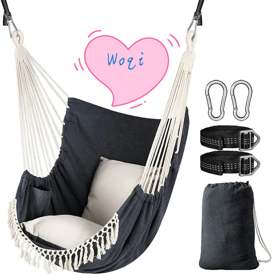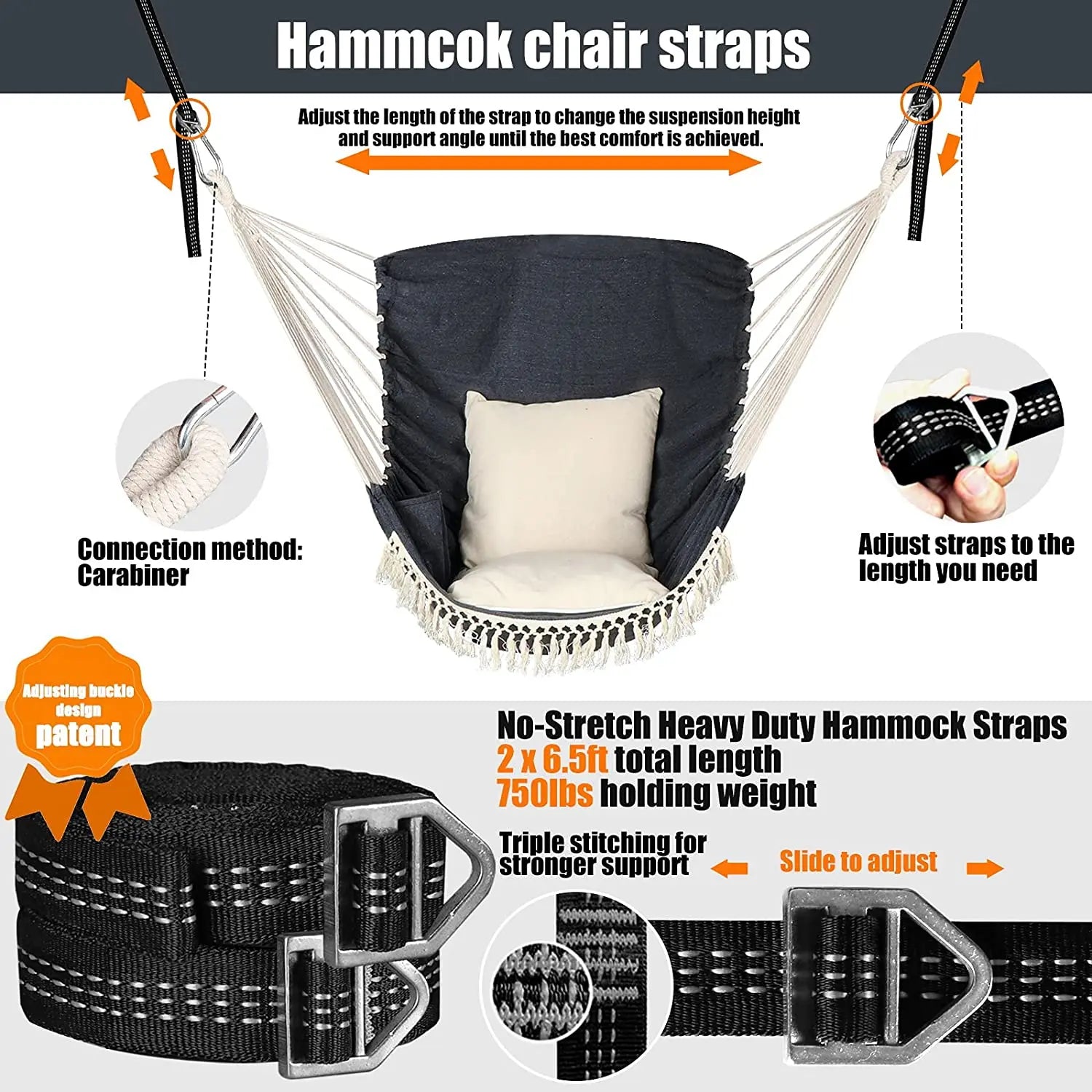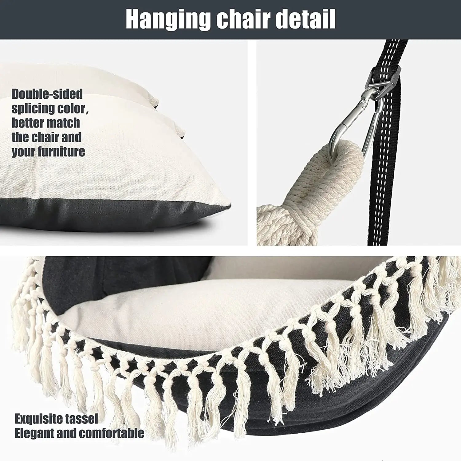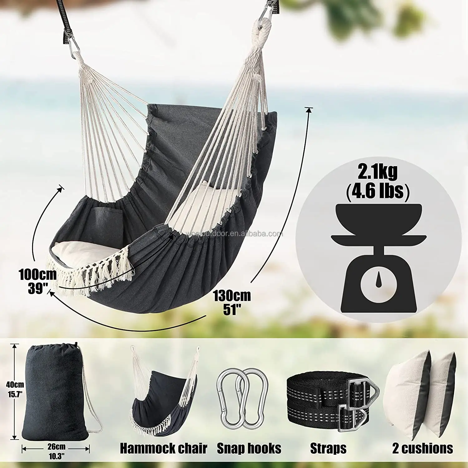 * After-Sales Service:Package including:1 x cotton hammock chair,2 x cushions,2 x adjustable straps,2 x snap hooks,1 x drawstring bag.Our aim is to provide high-quality products for everyone, but sometimes there are situations that we don’t expect to happen.If there are any problems,contact us in time,we will definitely provide targeted help as soon as possible.