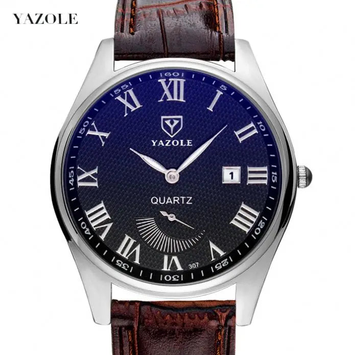 yazole 307 brand agents China man quartz watch 2019 PU leather band Waterproof Calendar big Couple watch supplier