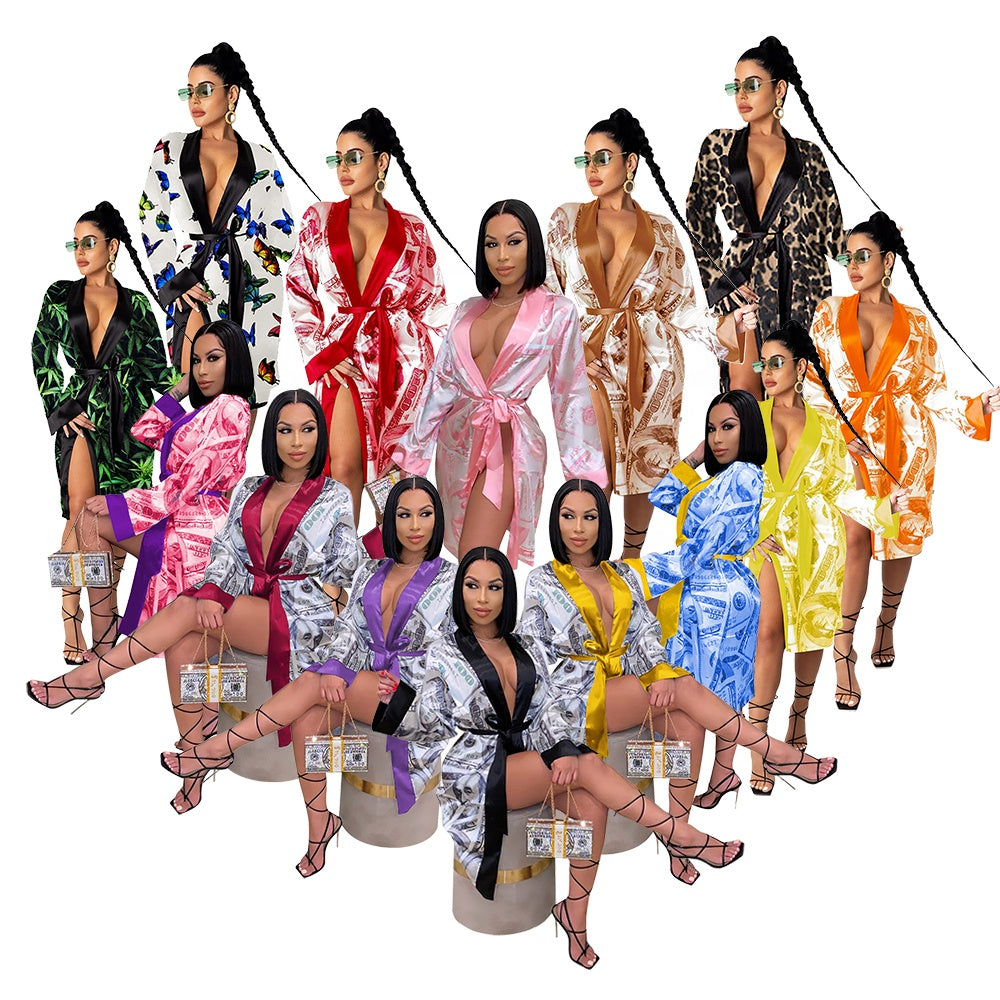 G0360 Bulk sexy femmes longue money silk satin robe long women