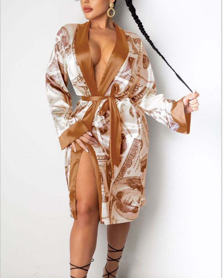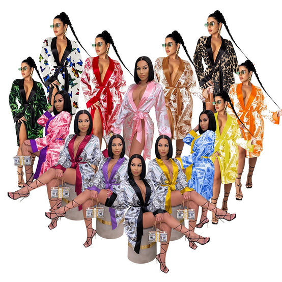 2023 Homewear Loungewear Sleepwear Lingerie Luxury Long Bath Women Lounge Wear Money Robe Silk Satin Robe Pajamas For Woman