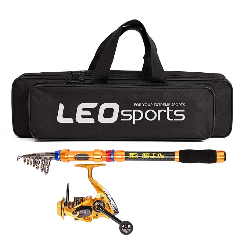 1.8M-3.6M telescopic fishing rod combination full set of carbon fiber fishing rod + rotating spool + fish bag protective cover