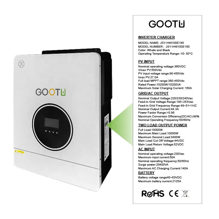 7.2/8.2/10.2KW 220/230/240VAC 48V 160A All In One Hybrid Solar Inverter