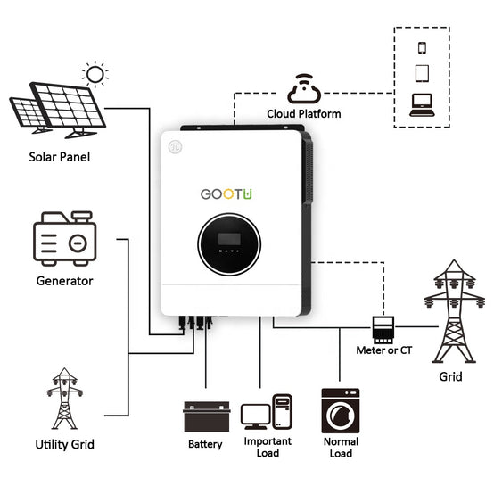 * Pure sine wave solar inverter (Grid Tie / Off Grid).
