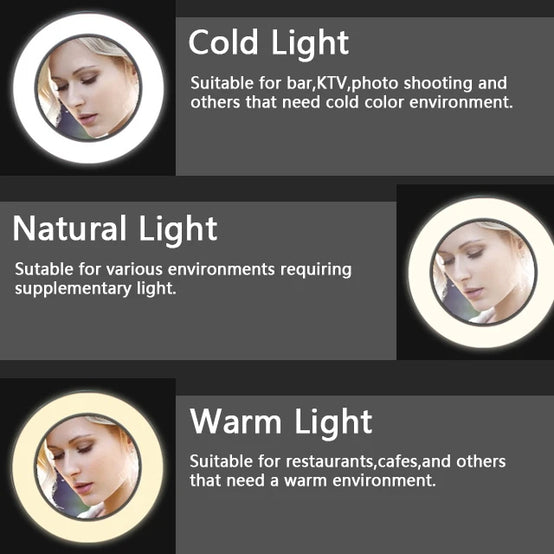 【Dimmable Ring Light】Featuring 3 color lighting modes: Warm Light (3000K), Cool White (4500K), and Day Light (6000K), and each mode has 11 brightness levels, 33 options in total. Our ring light will meet all your needs in different circumstances. It is the perfect dimmable lighting to take away all the unflattering shadows. Dimming range: 1%-100%
