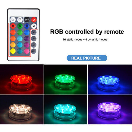 10 LED Remote Controlled RGB Submersible Light Battery Operated Led Aquarium Submersible Lights