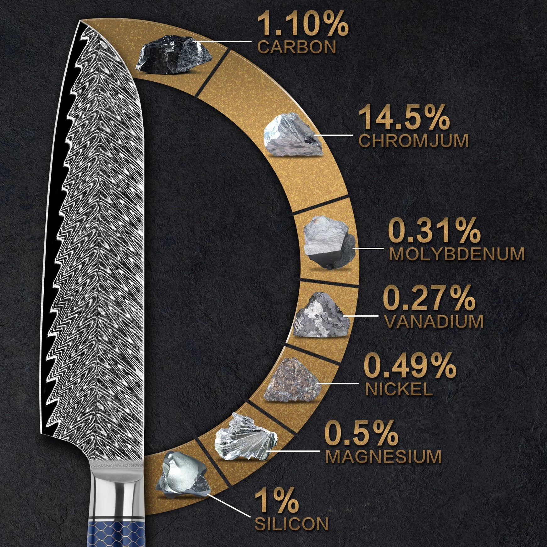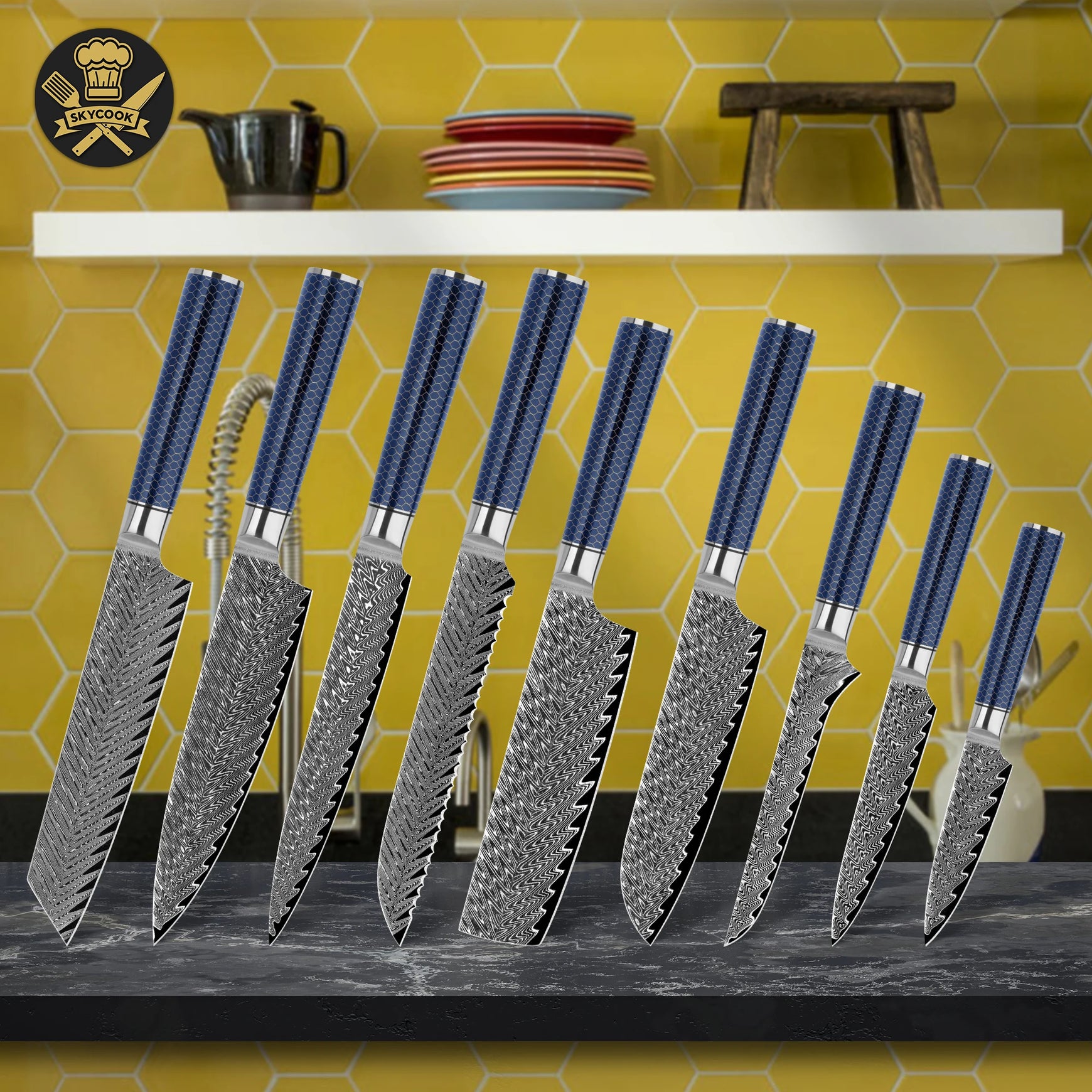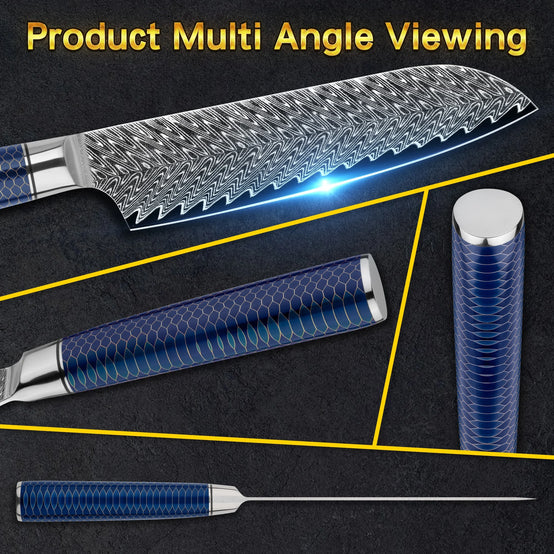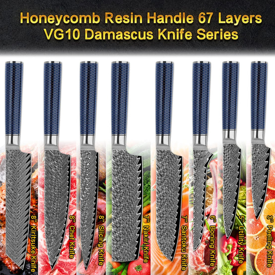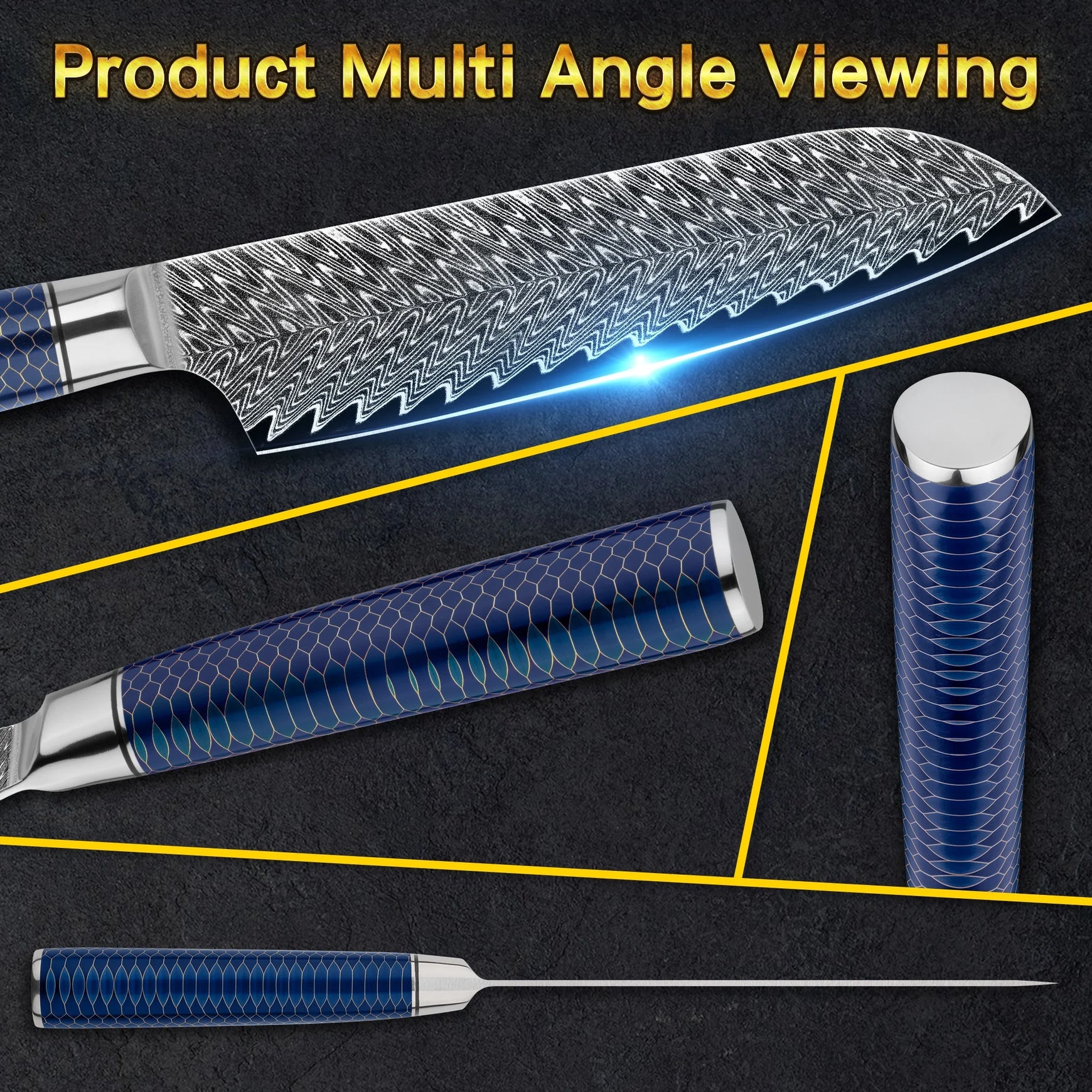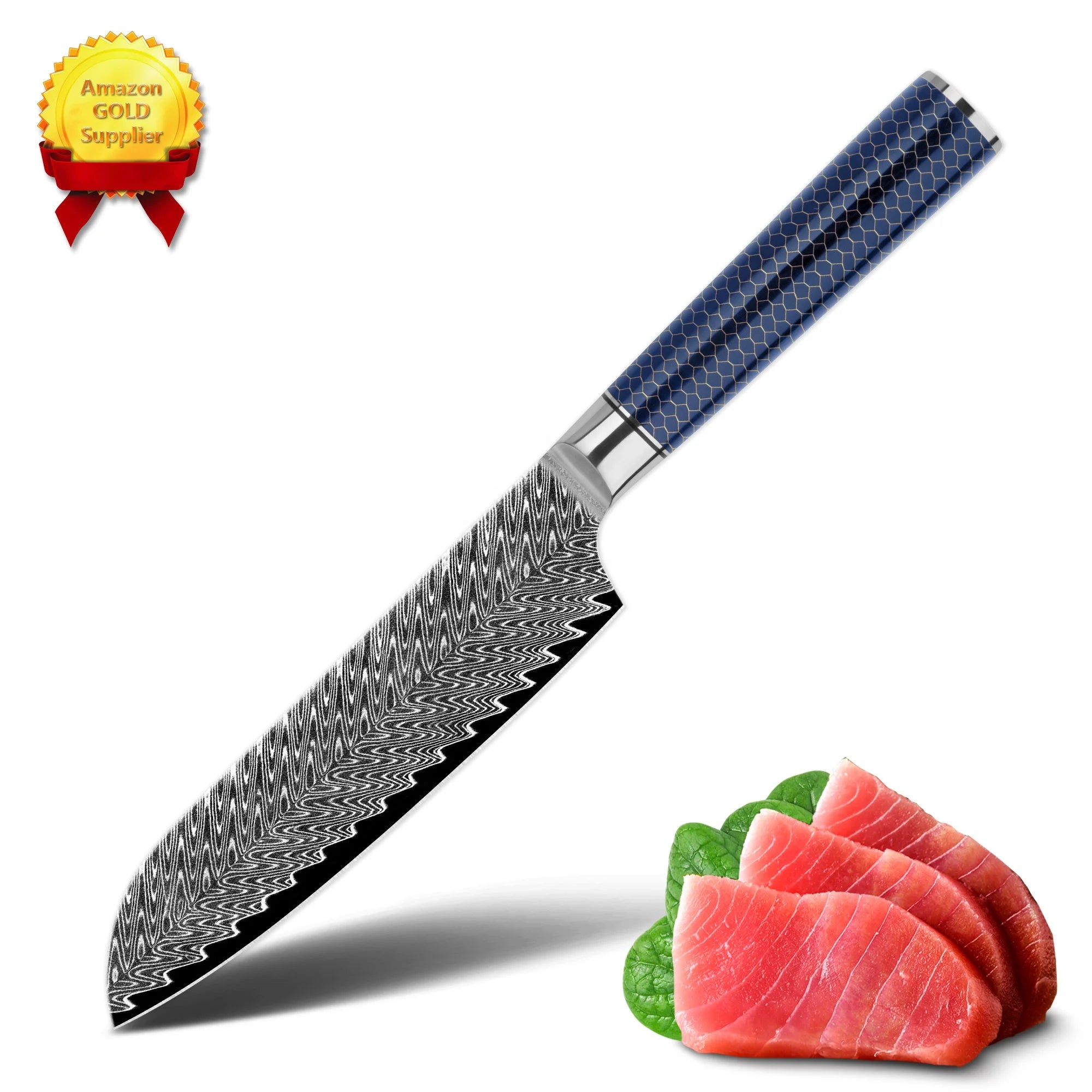 10% Off Custom Logo Honeycomb Aluminum Resin Handle 7 inch damascus knife set de cuchillos santoku with custom gift boxes