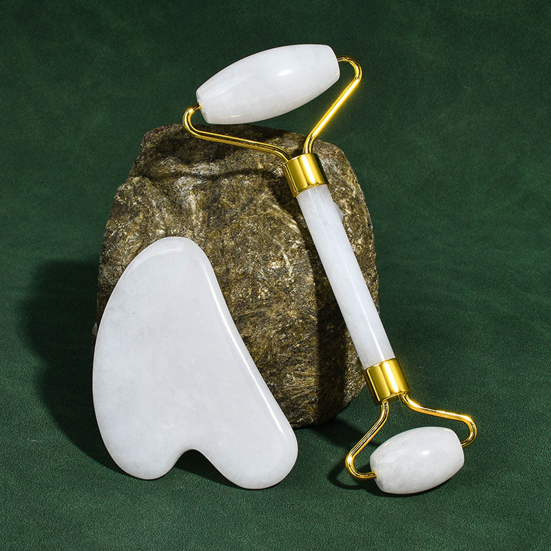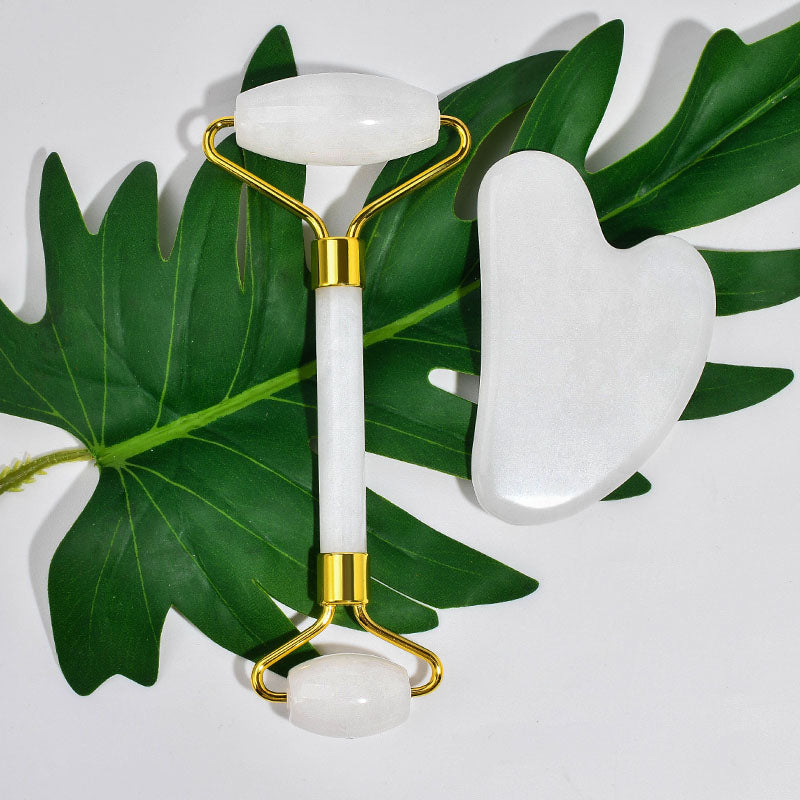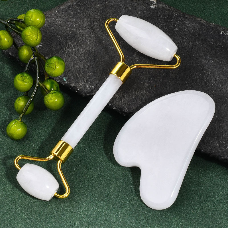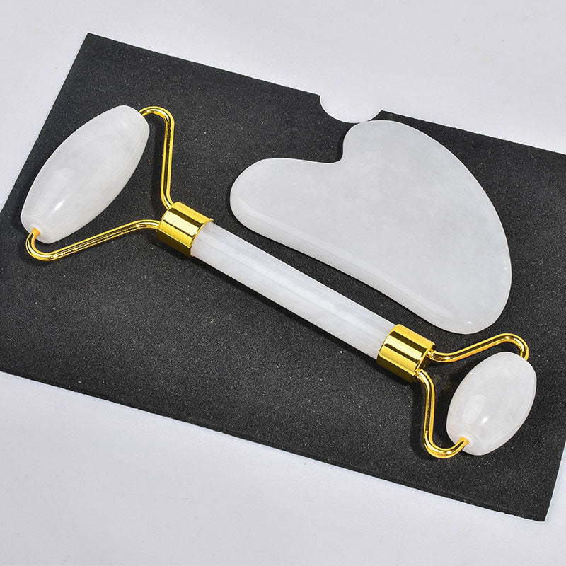 | Name | 100% natural white jade guasha jade and roller set for body Massager |