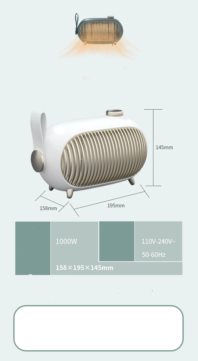 1000W Home Stand Electric Heater PTC Ceramic 3s Fast Heating Warm Hand Portable Mini Personal Space Desktop Small Fan Heater