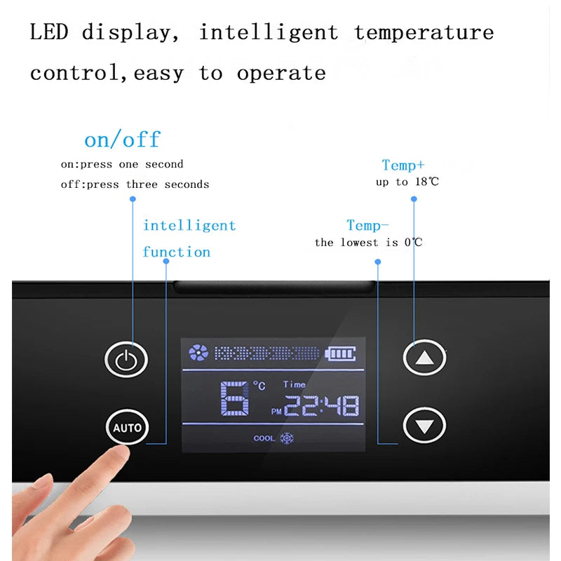 * 1.The high-definition LED touch screen is simple and easy to understand,Power display and temperature display making it easier for the elderly to operate.The arc angle design of the inner tank prevents the drugs from bumping in the box during the journey. Sandblasting and anodizing process makes the refrigerating temperature lasting.