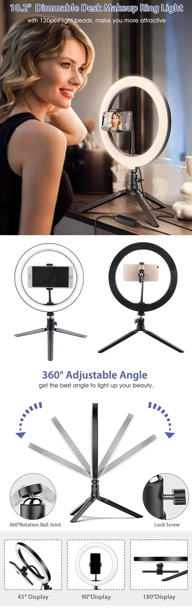 10inch led ring light 4800-5200k 26cm for tiktok live streaming selfie ring light with tripod stand light 10 inch