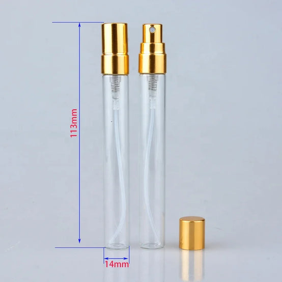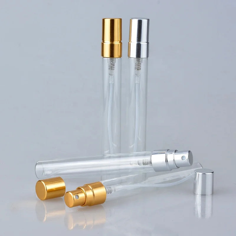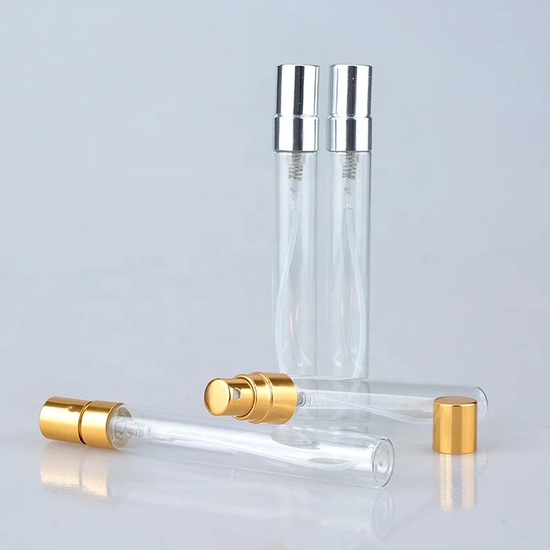 10ml aluminium sprayer transparent glass tube perfume bottles travel portable spray sample bottles mini empty clear bottle