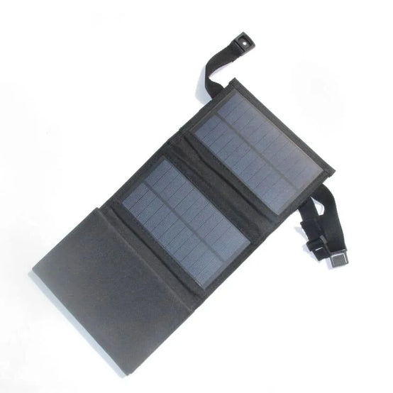 1. Polysilicon solar panel: 10W 2. Output voltage :5V Current: 0-2A (intelligent voltage regulator) 3. USB output port 4. Product net weight: 295G 5. Weight; 332(with packing weight subject to actual product) 6. Expansion size 590*170*3MM 7. Folding size: 170*110*35mm 8.Color: Black Package size: 200*140*40MM The package includes: 1 x 10w Solar Foldable Charging Pack 2X Mountaineering buckle