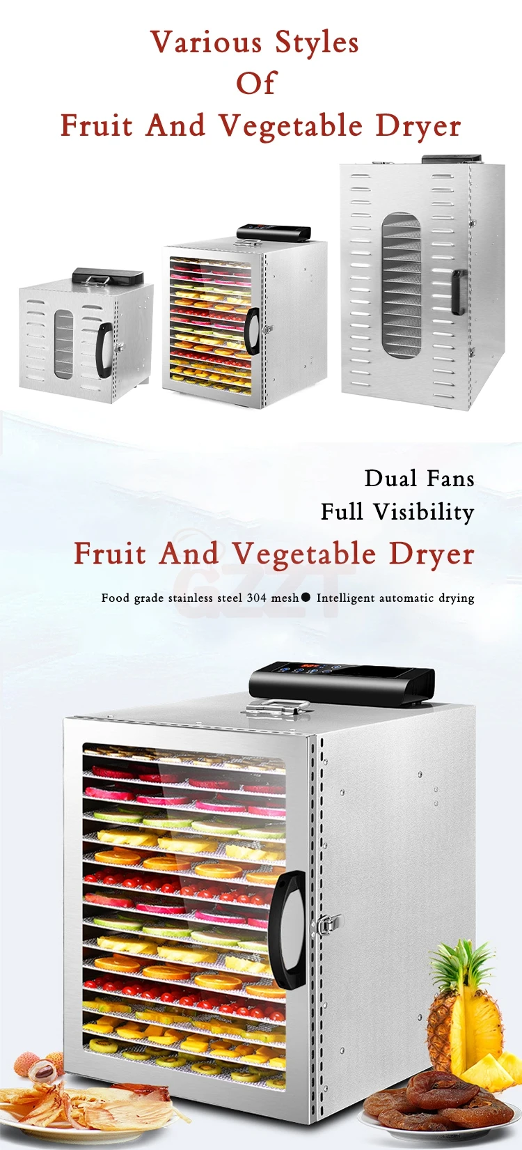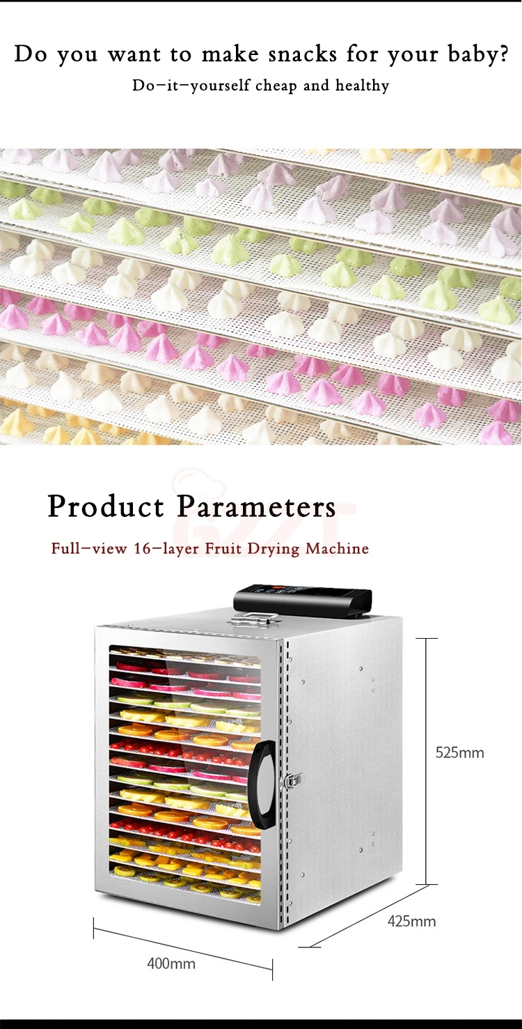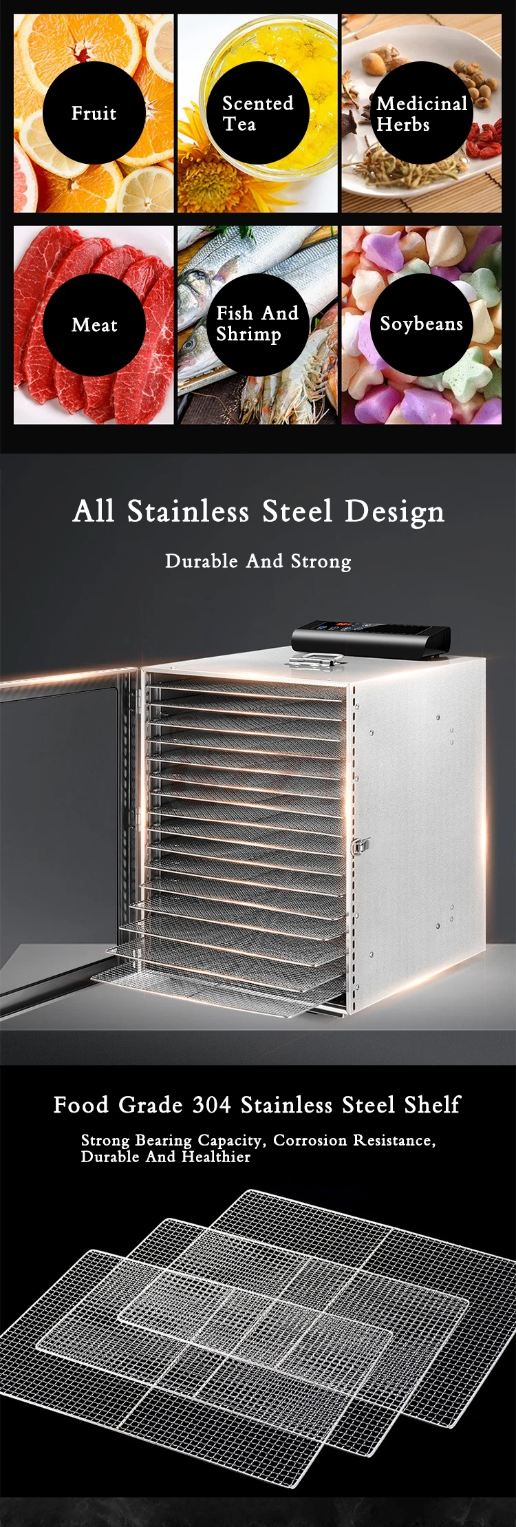 110V 220V Electric Home Commercial 16 Trays Overheat Protection Meat Fish Drying Machine Vegetable Fruit Food Dehydrator