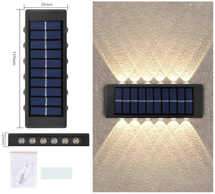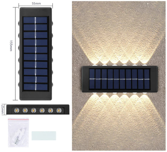 12 LED Outdoor Waterproof ip67 up and down solar wall light for Garden Patio Garage Front Door