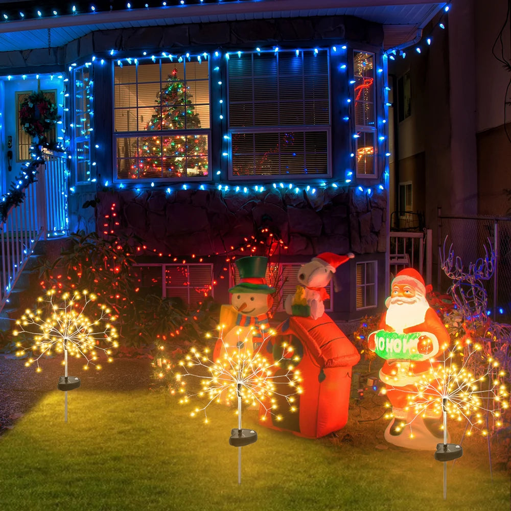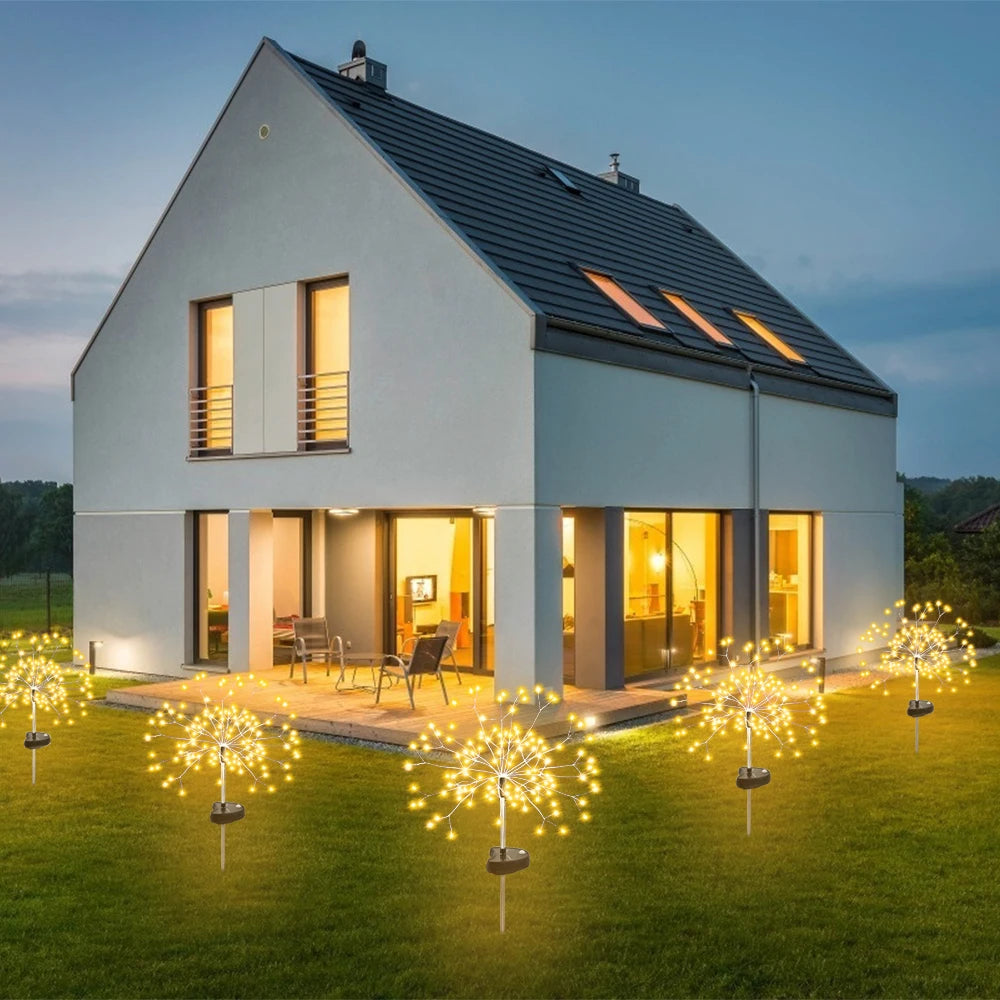 120 Led Outdoor Waterproof Solar Powered Garden Decorative Lights Starburst Dandelion Landscape Light Street Stake Lighting