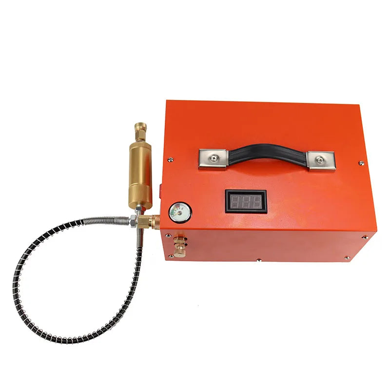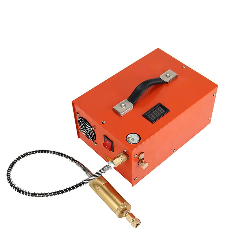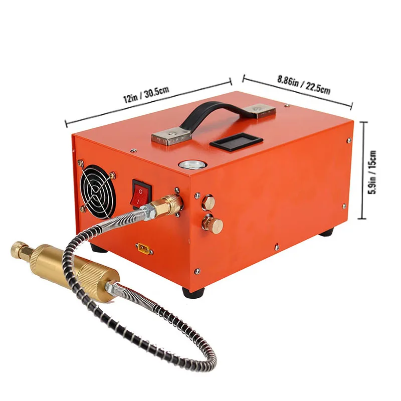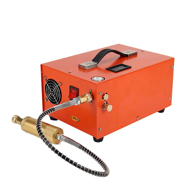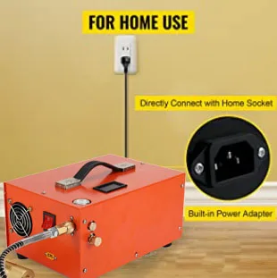A 110V/220V socket can directly power this portable PCP compressor at home with a built-in converter