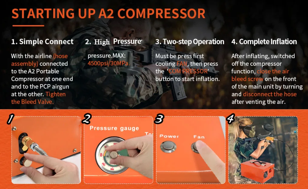 This paintball compressor features a convenient handgrip, easy for you to carry and store
