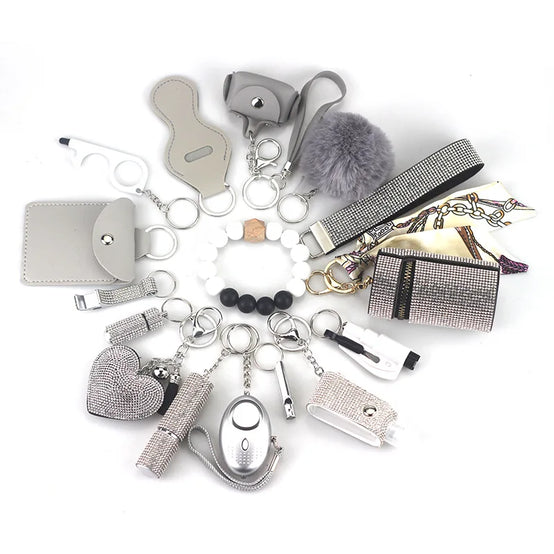15-piece set Shiny Self-Defense keychain Siren Safety Alarm Self Defense Keychain for Women Dropshipping