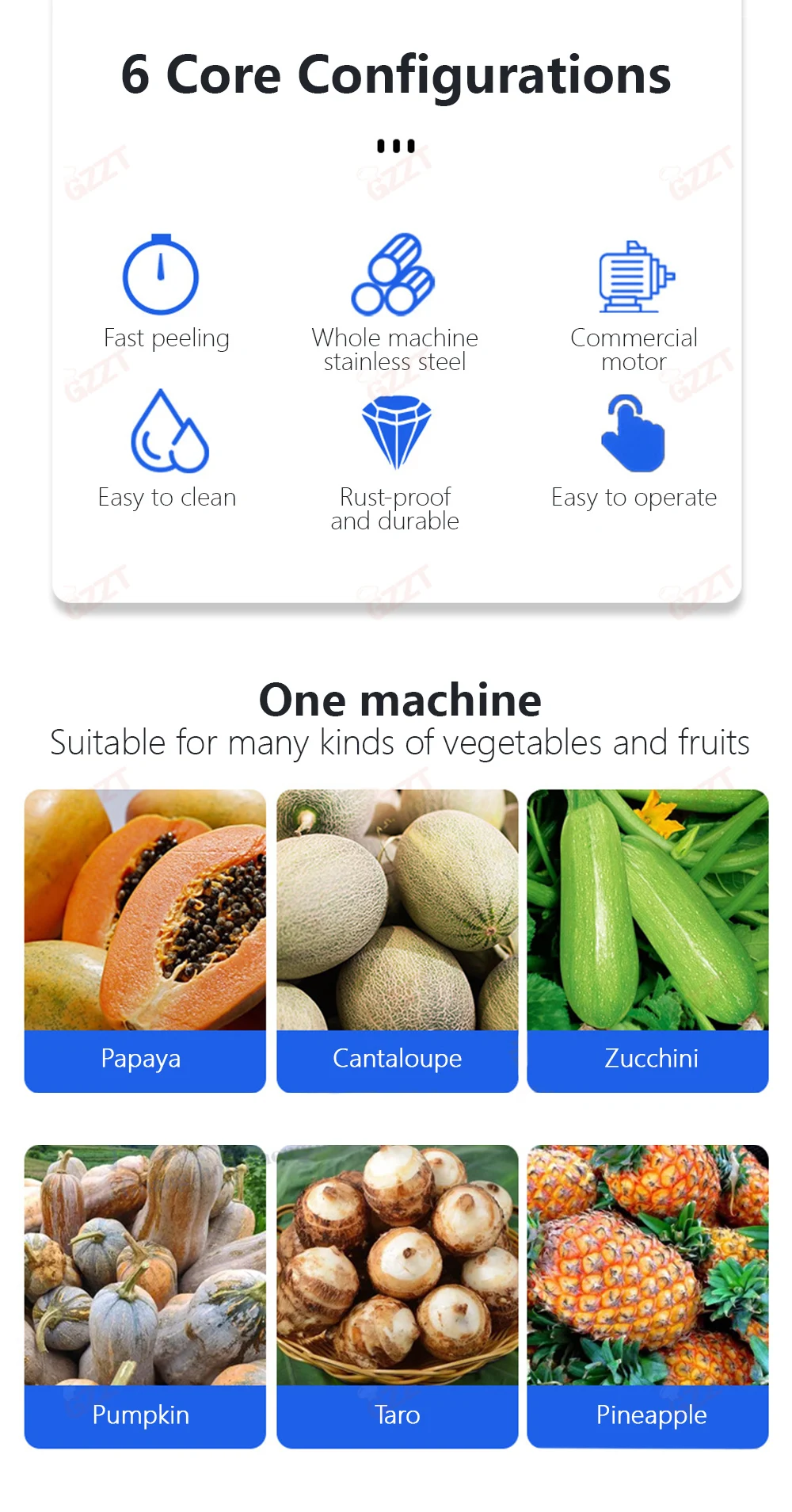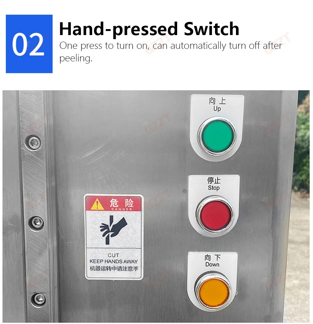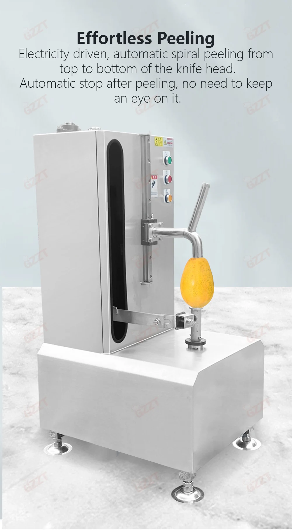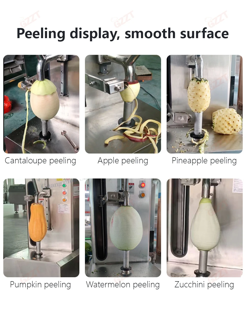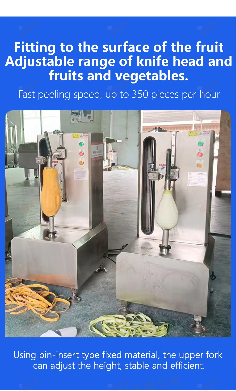 The peeling machine is suitable for peeling papaya, cantaloupe, watermelon and other melons. The peeling thickness is adjustable and convenient. The knife group cuts up and down automatically in a cycle. The machine is easy to disassemble and wash, easy to operate when in use, safe and hygienic, suitable for use in the catering industry, canteens, and food processing plants.