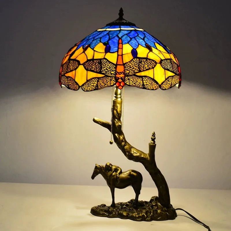 16Inch Tiffany Colored Glass Table Lamp Dragonfly Retro Classical Table Lamp Bedroom Bedside Lamp Decoration