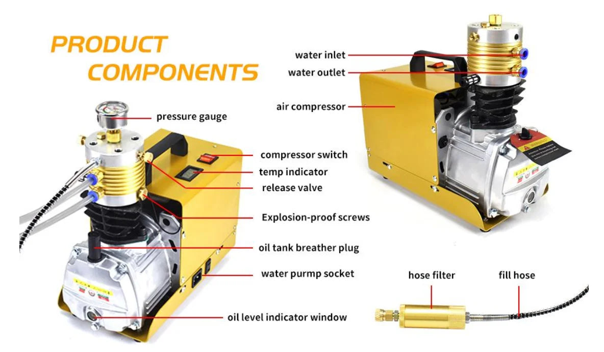 1800W 110V High Pressure pcp Air Compressor for Painttball Air Riffle Air Diving Bottle