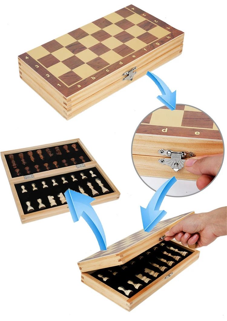 2 Sizes Large Magnetic Wooden Folding Chess Set Felted Game Board Interior Storage Adult Kids Gift Family Game Chess Board