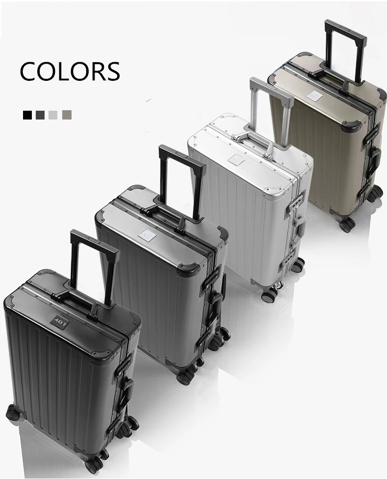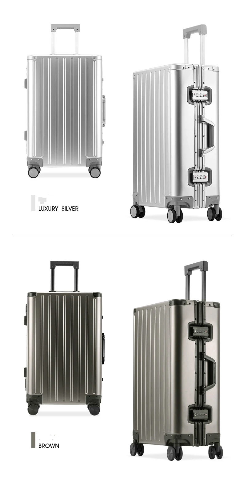 20 24 26 28 30 Inch All Aluminum Carry on Luggage With TSA Locks Fashion Cool Metal Hard Shell Spinner Suitcase Silver Gold Grey