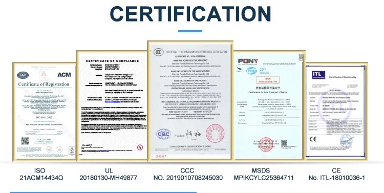 CCC / CE / FCC / ROHS / MSDS / UN38.3 / CE / GS / ETL / UL / PSE