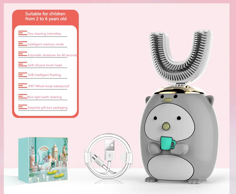 2021 New Design 360 Degree Teeth Clean Children Sonic Electric Toothbrush Food Grade Children's Electric Toothbrush