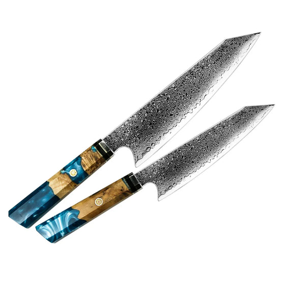 2021 new design 67 layers kitchen knife set Damascus VG 10 Steel Premium resin burl Wood handle