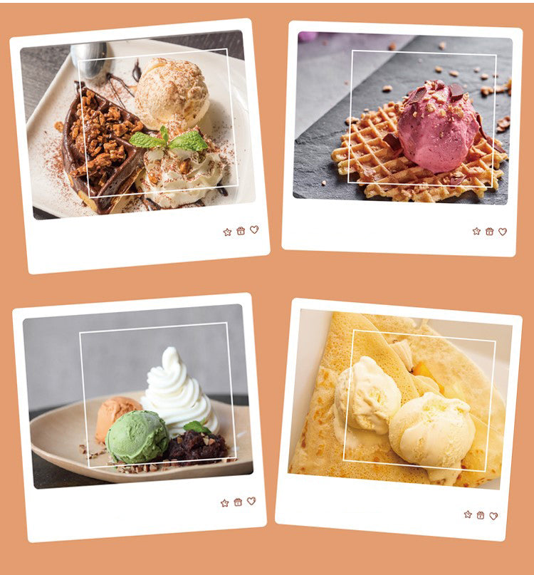 Feature: 1. Semiconductor refrigeration technology, no need to pre-cool the refrigerant, plug and play, simple production. 2. Imitate manual mixing, air can enter, and the taste is dense. 3. You can add ingredients at any time during the process and DIY as you wish. 4. Different taste options: soft (90 minutes) and full-bodied (120 minutes), switch according to taste. 5. Easy-to-clean coating on the inner wall: easy to clean, wipe it off with kitchen paper after rinsing. 6. Food material: Food-grade materials are used for the parts in contact with food.