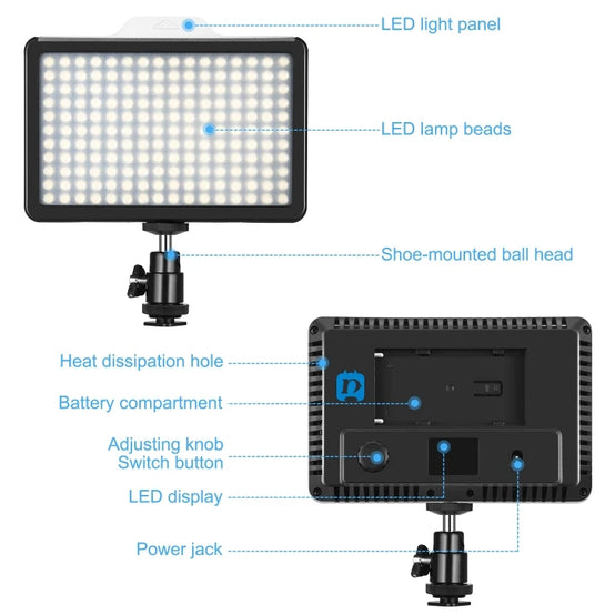 2022 Factory Offer Photographic Lighting PULUZ 176 LEDs 12W 3300-5600K Dimmable Studio Light Video & Photo Light