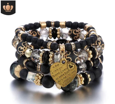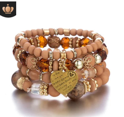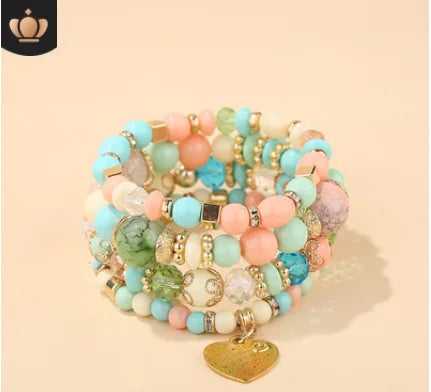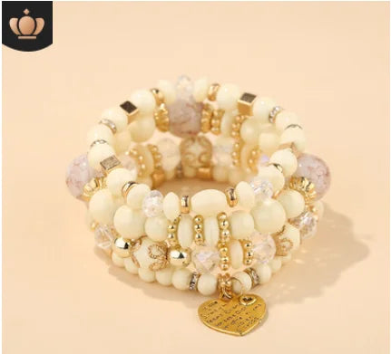 2022 Fashion Jewelry Multi Layer Bead Beaded Boho Woman Stack Personalized Heart Charm Set high Quality Bracelet Set