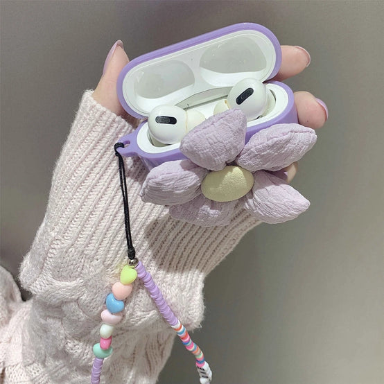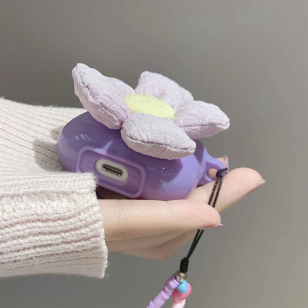 2022 Fashion Purple Flower Headset Cover Earphone Accessories Case With chain For AirPods Pro for AirPod 3 2