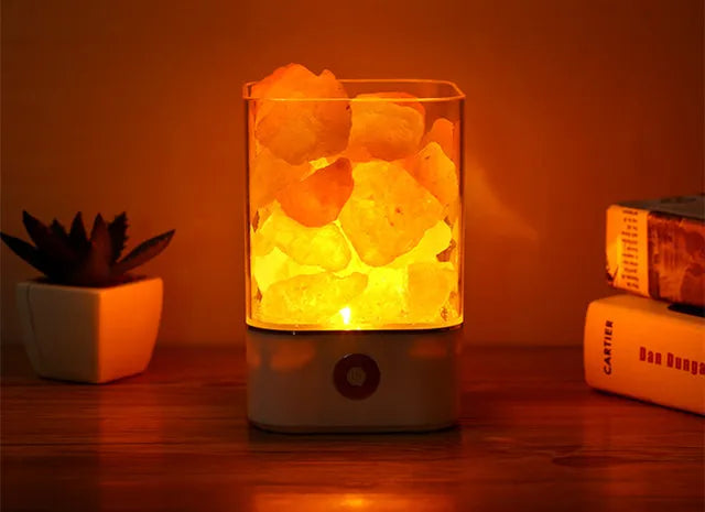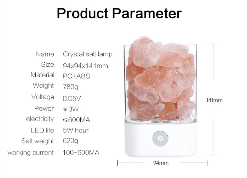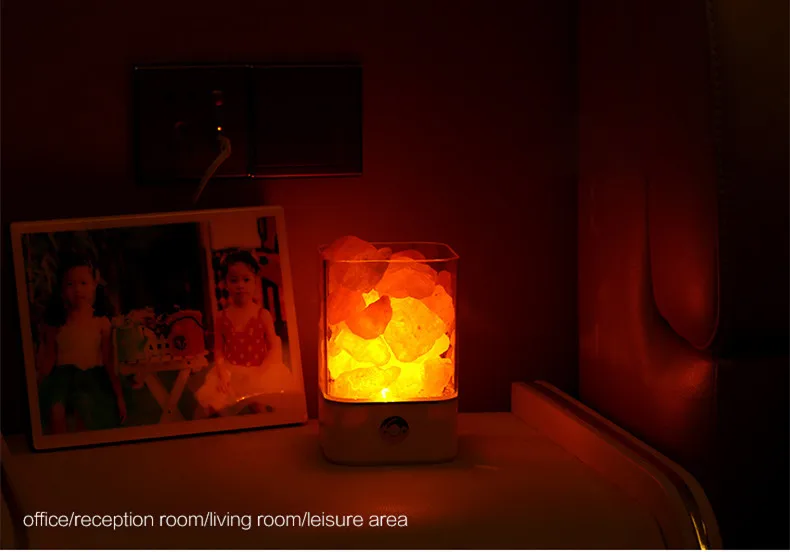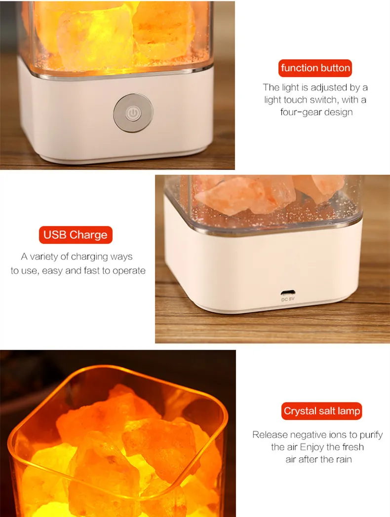 WT-M4 crystal salt lamp uses natural crystal salt ore. The salt crystal can generate negative ions and emit ions to the surroundings. It has an ion production process. After the salt lamp is lit, a large amount of negative ions can be quickly released by heating, which can effectively improve the air quality. The negative ions released can effectively purify the air. Moreover, the unique natural orange-pink light waves of the salt crystals help to relieve stress, relax the body and mind, and relieve fatigue. At the same time, the product has a built-in color light mode, which can purify the air and also create a comfortable space environment. It uses the heating tube inside the product to generate heat and transmit it to the salt crystal for heating, so that it can effectively release negative ions. At the same time, through the light of the color LED lamp, it creates a comfortable atmosphere effect.Suitable for scenes such as living room and bedroom.