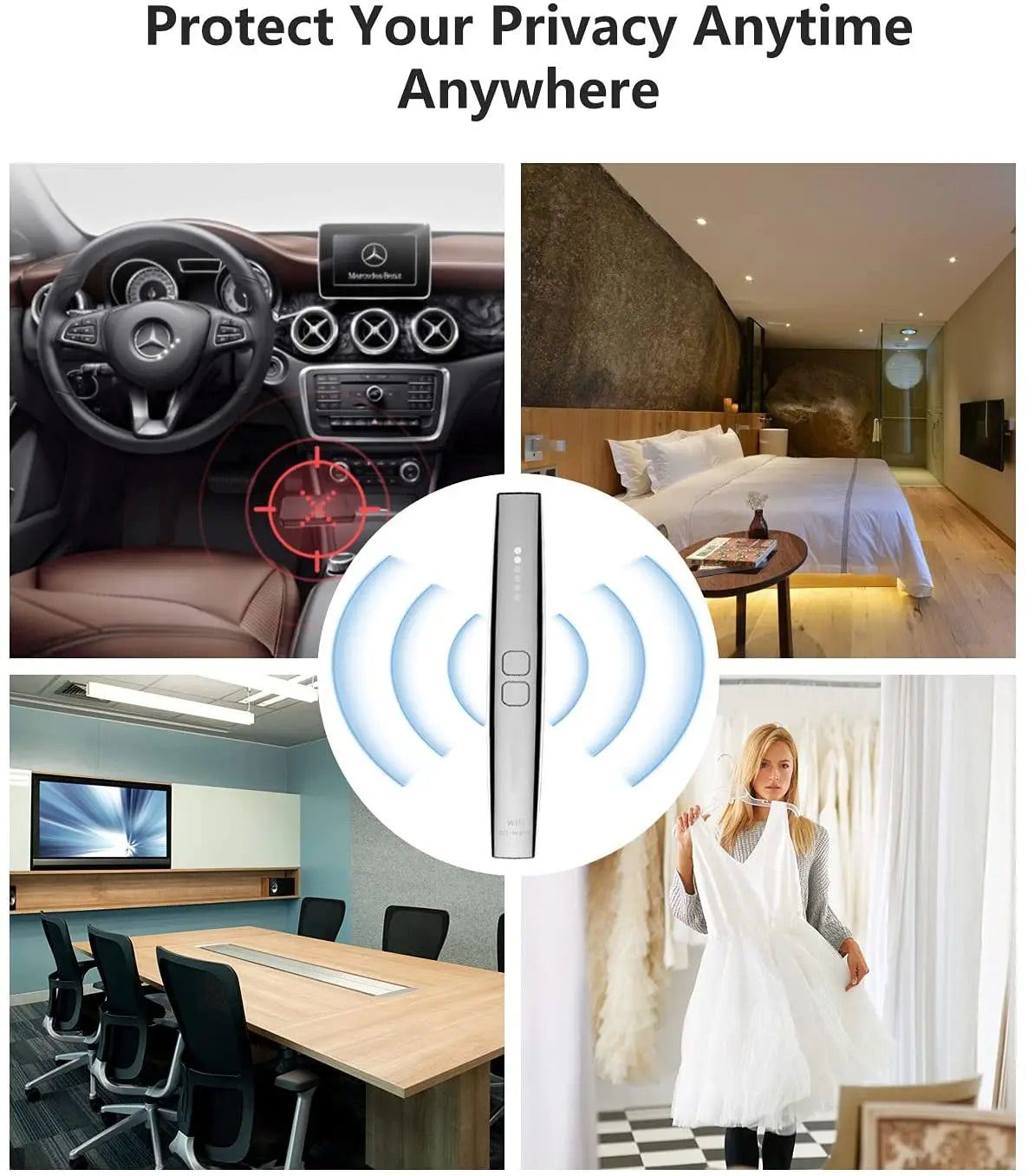 *Wi-Fi mode to detect Wi-Fi signal and Wi-Fi camera. *All-wave mode to detect GPS tracker, listening device, phone signal etc. * Laser mode to identify offline camera/no signal transmission camera. *Infrared mode to detect cameras at low light environments *built-in 800 mAh Strong Battery Life