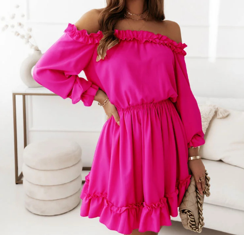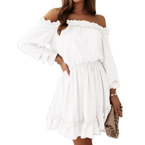 2022 Summer Women Dress Ruffle Office Lady Casual Dress Slash Neck Female Party Wedding Clothes
