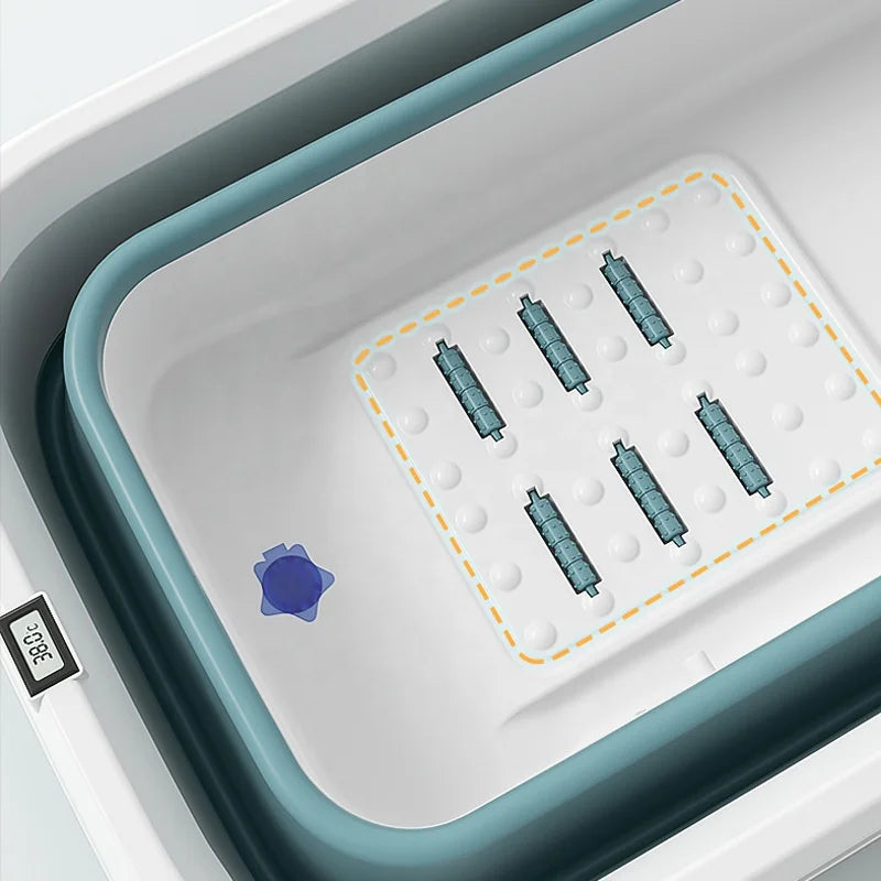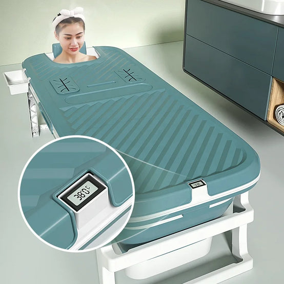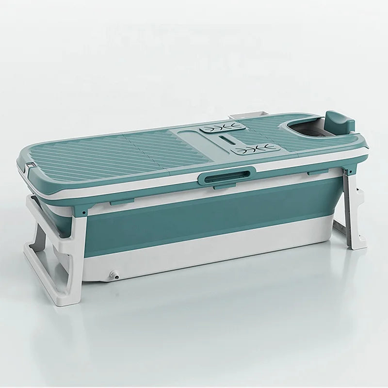 Folding bathtub ,with top lid ,drainer and storage basket .