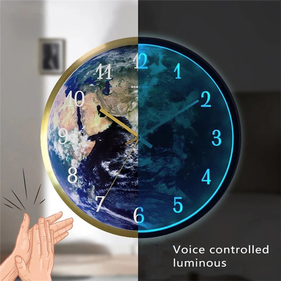2023 LED Voice Control Induction Led Night Light Home Light Bedroom Vintage Moon Wall Light Clock Earth Hot Sale Wall Lamps