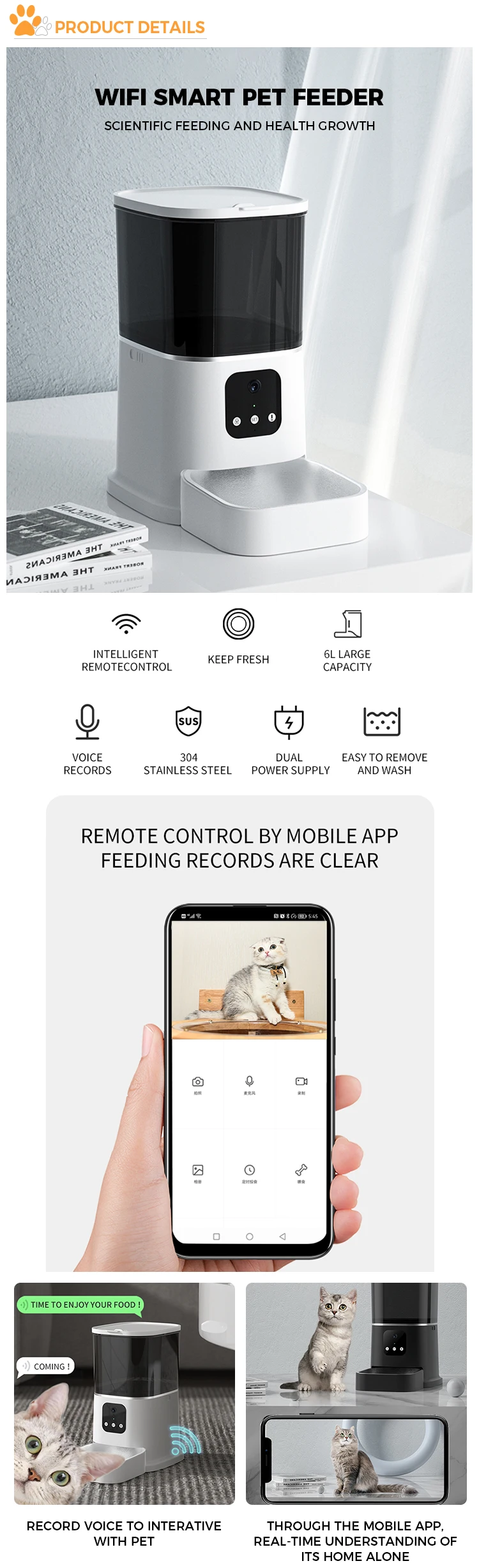 2023 New best selling wholesale 6L pet suppliers microchip mascotas remote dog food wifi camera video smart automatic pet feeder