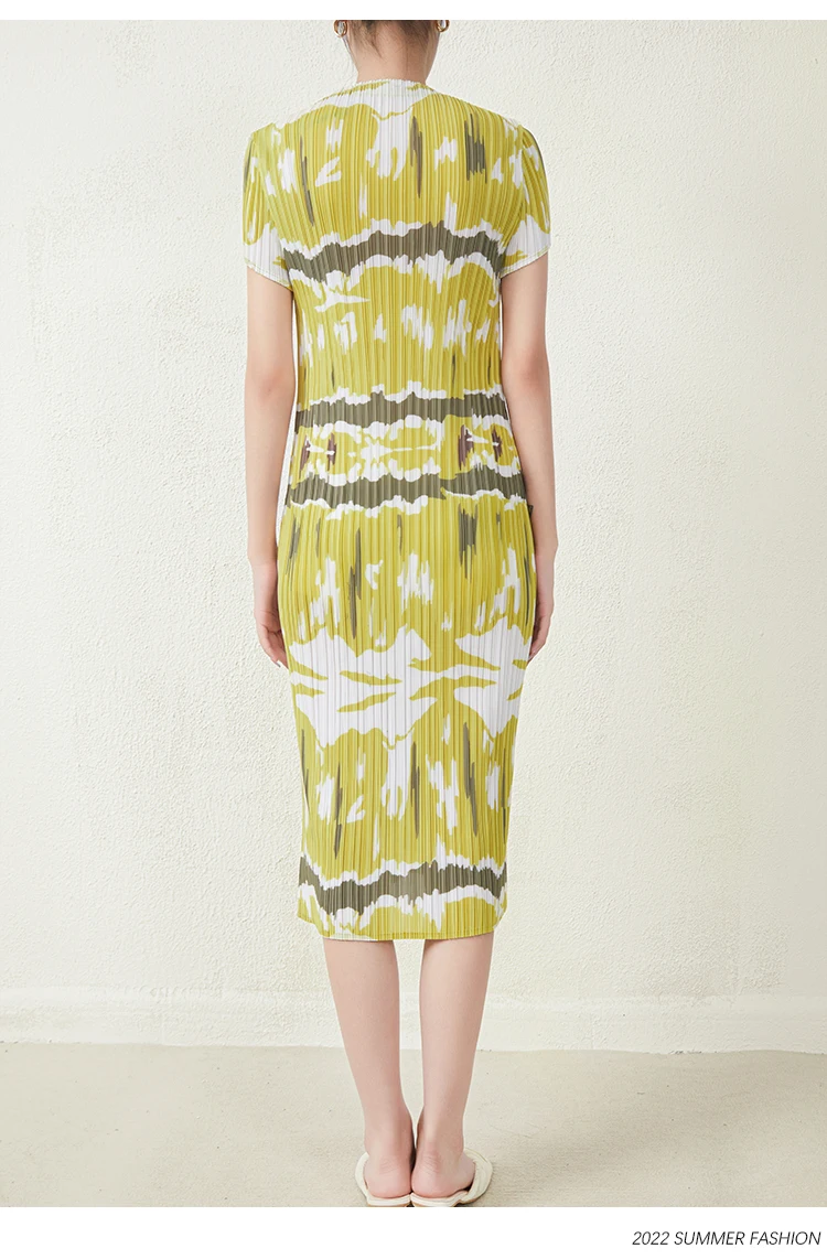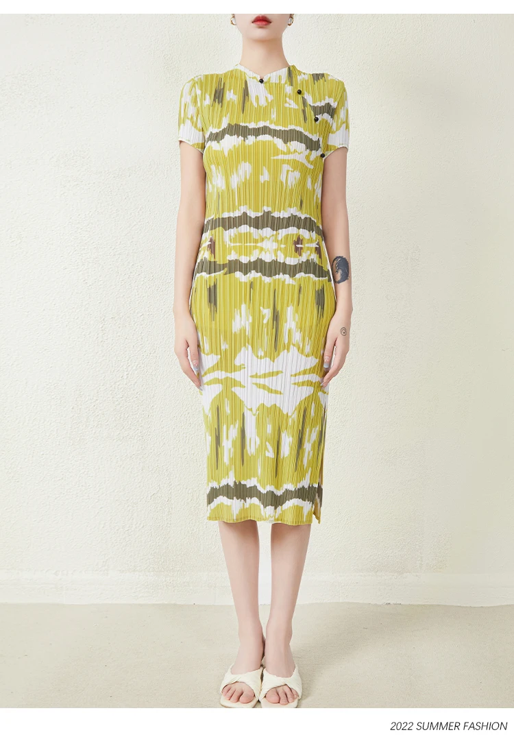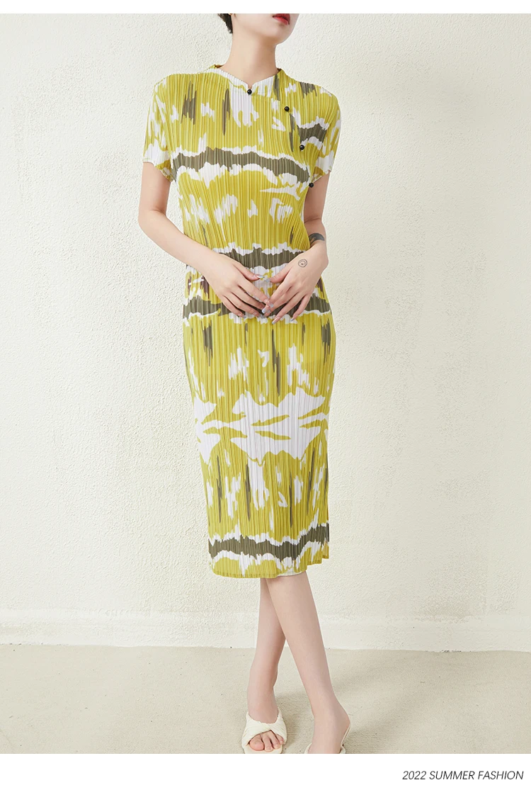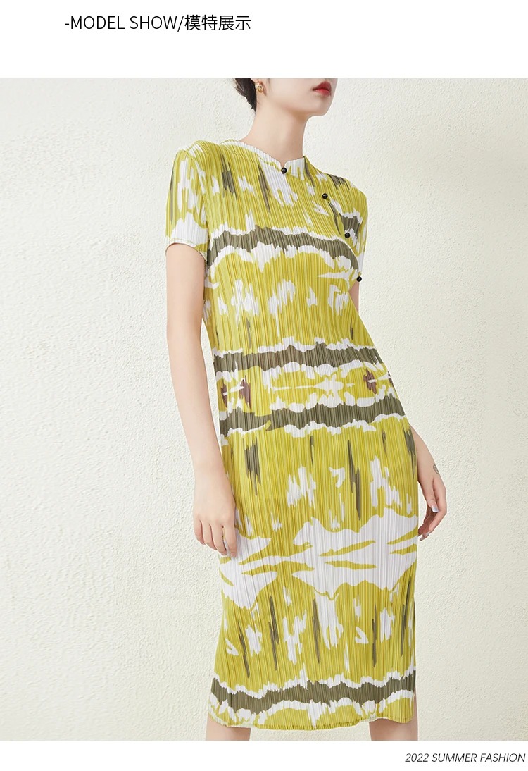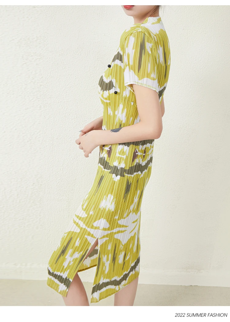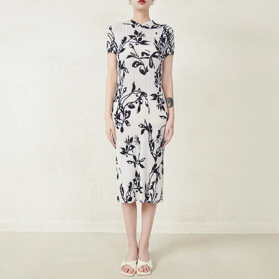 2023 New Summer Miyake Pleated Print Clothes Women Korean Floral Dress High Quality Dresses