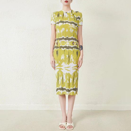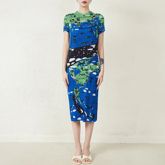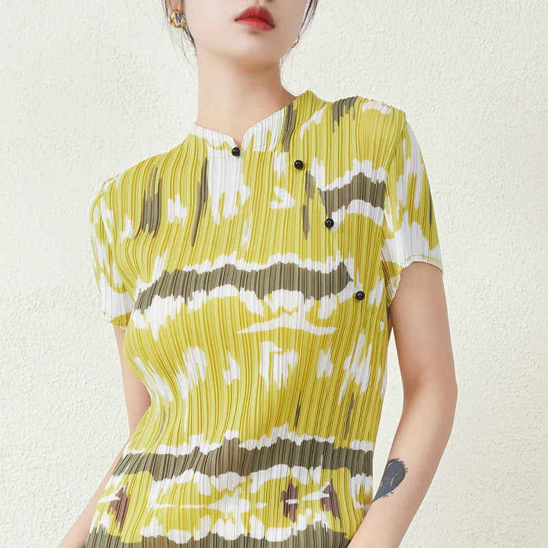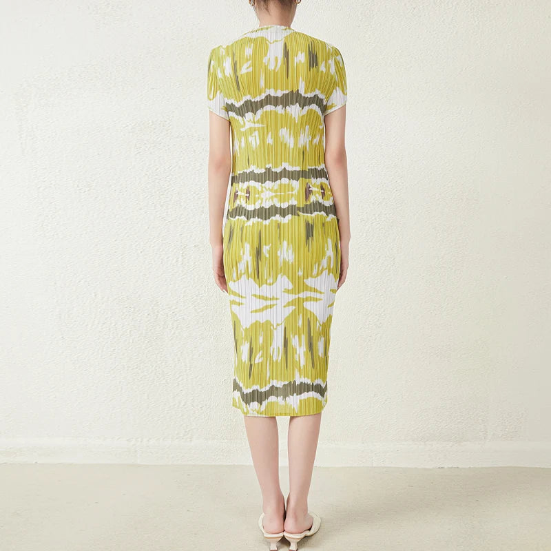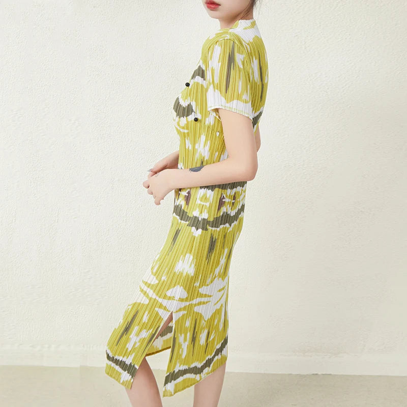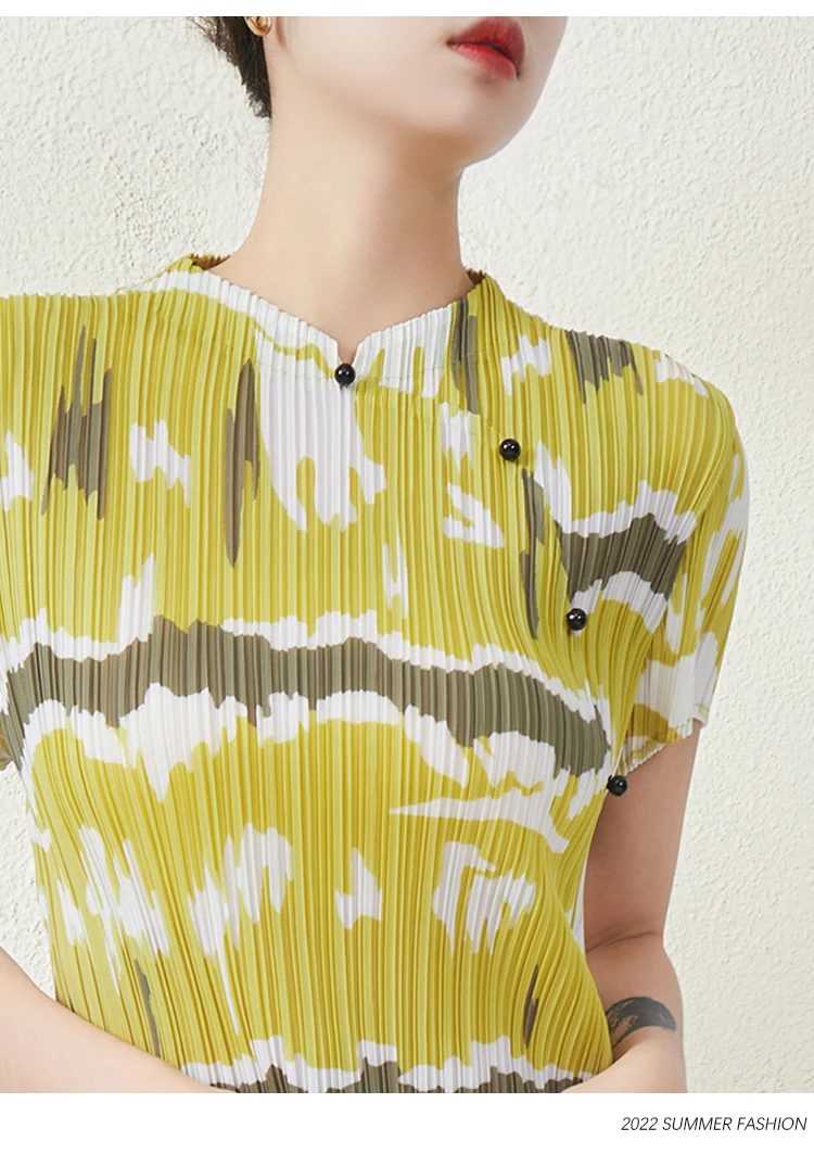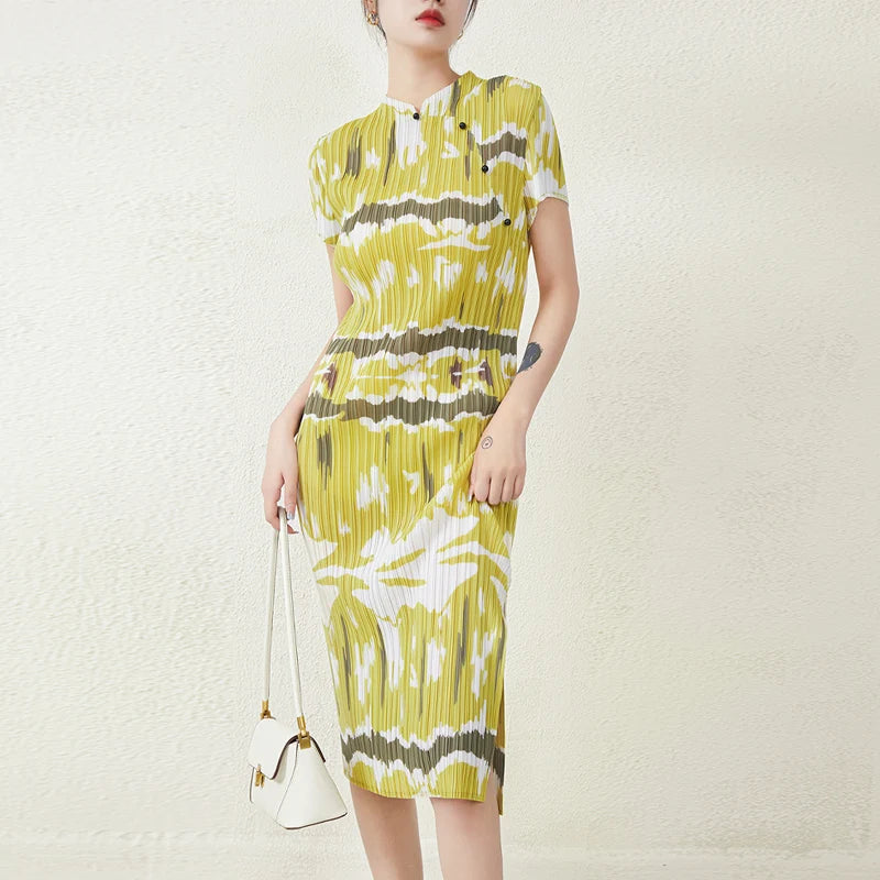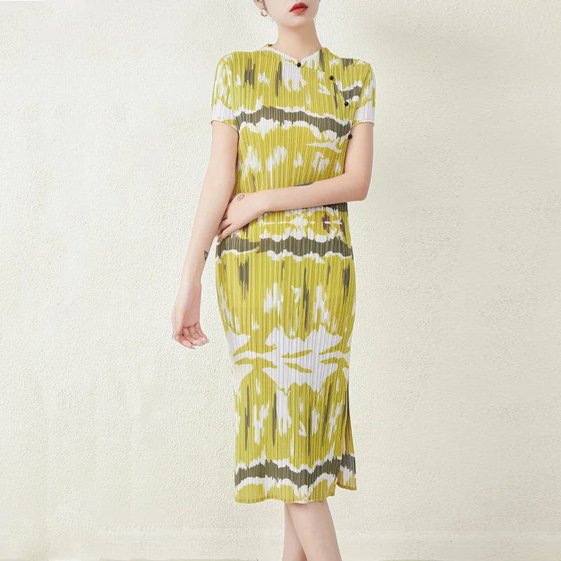 2023 New Summer Miyake Pleated Print Clothes Women Korean Floral Dress High Quality Dresses