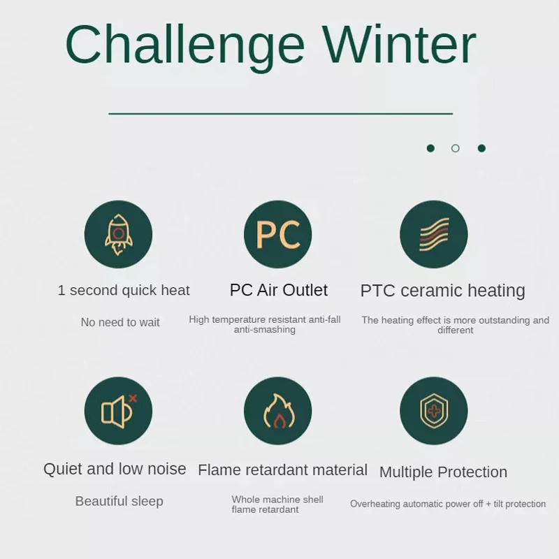 2023 newest 3s fast heating warm and winter air blower 800w desktop room electric ptc fan heater for office