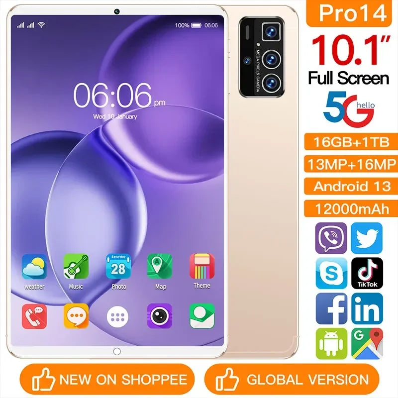 Global Version Tablets Pro 14 10.1inch HD Original Tablet 5G Wifi Android PC Tablets Google Play Tablets PC Global Tab Pads GPS