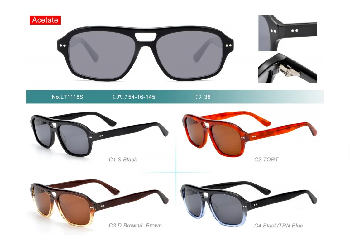 2024 Fashion Vintage Double Bridge Stylish Sunglasses Protection Anti Reflective Black Shades Sunglasses